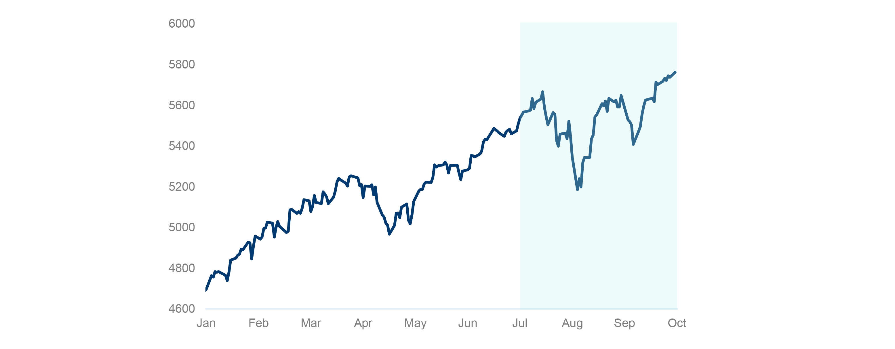 Despite markets reaching all-time highs by the end of September, the journey was far from linear. As shown in the chart below, the US market fell over 8% from mid-July to early-August.
