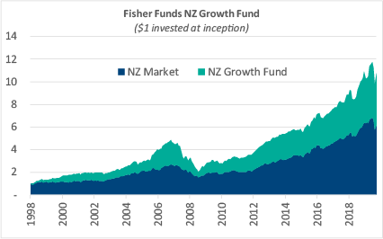 Over the last 21 years our New Zealand Growth Fund (the first fund set up when Fisher Funds was founded) has delivered an annual return of over 11% per annum after fees. Clients that have been invested since the beginning would have seen a $10,000 investment grow to almost $110,000 today. This compares with less than $65,000 if it had been invested passively in an index replicating the NZX 50 Index.
